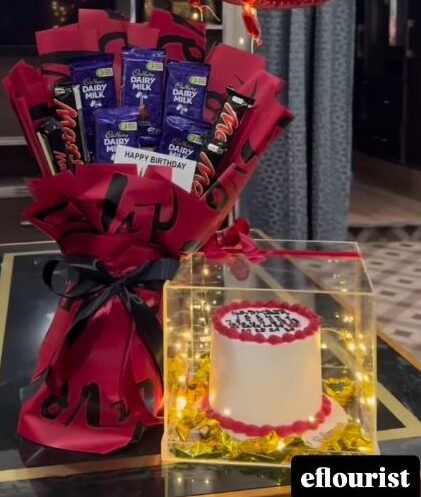 Chocolate bouquet wrapped in red & black premium paper